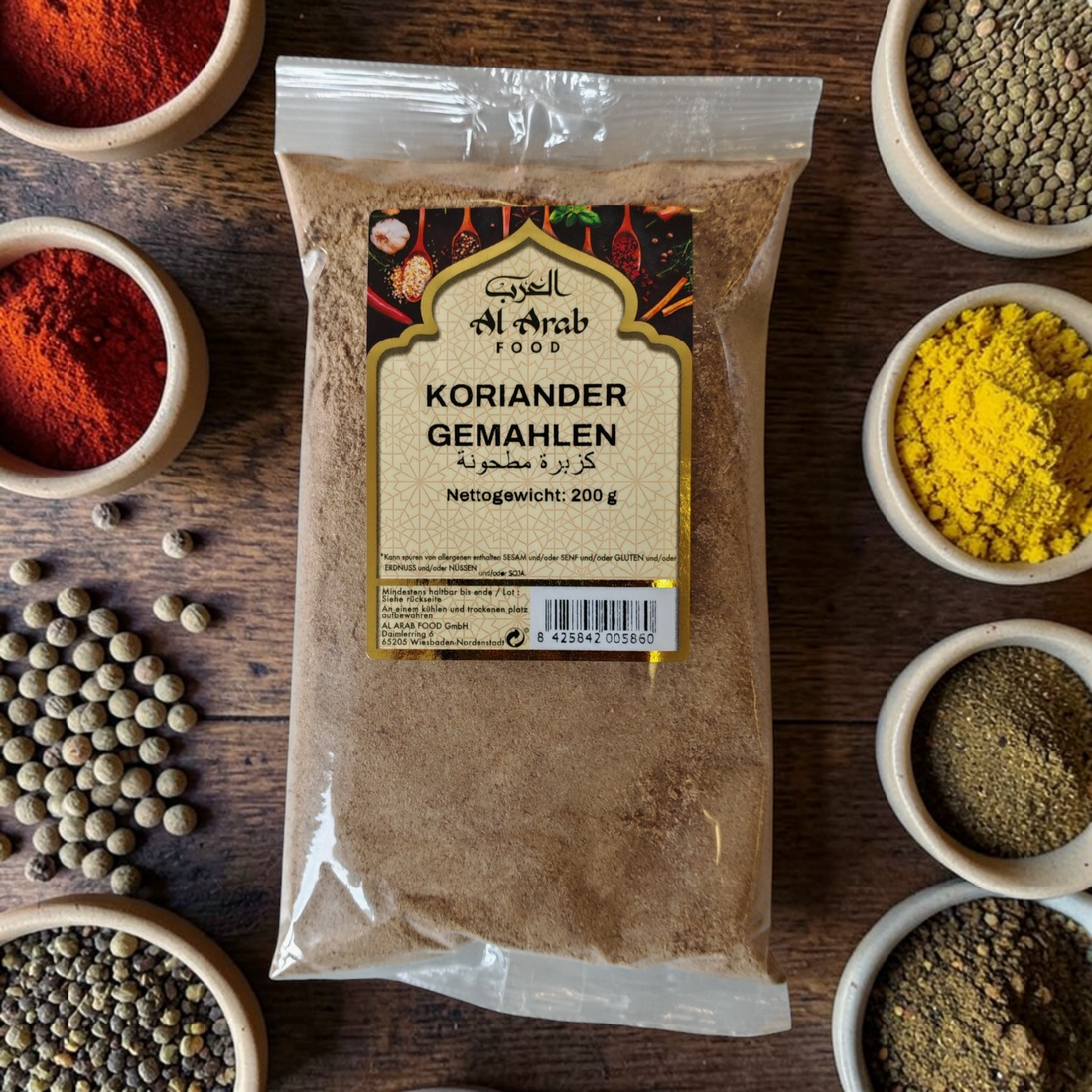 Entdecken Sie das milde, zitrusartige Aroma des gemahlenen Korianders von Al Arab Food. Dieses vielseitige...